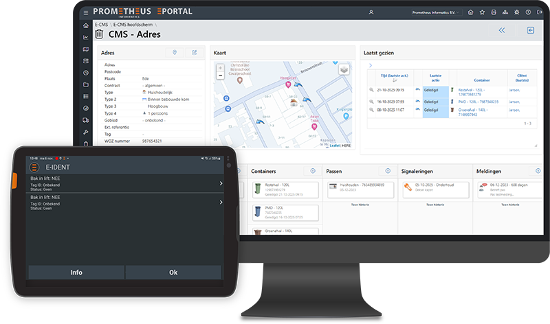 E-Ident registreert alle aanleveringen digitaal en koppelt dit aan voertuigen en klanten. Van ledgingen tot milieustraten, alles wordt automatisch vastgelegd.