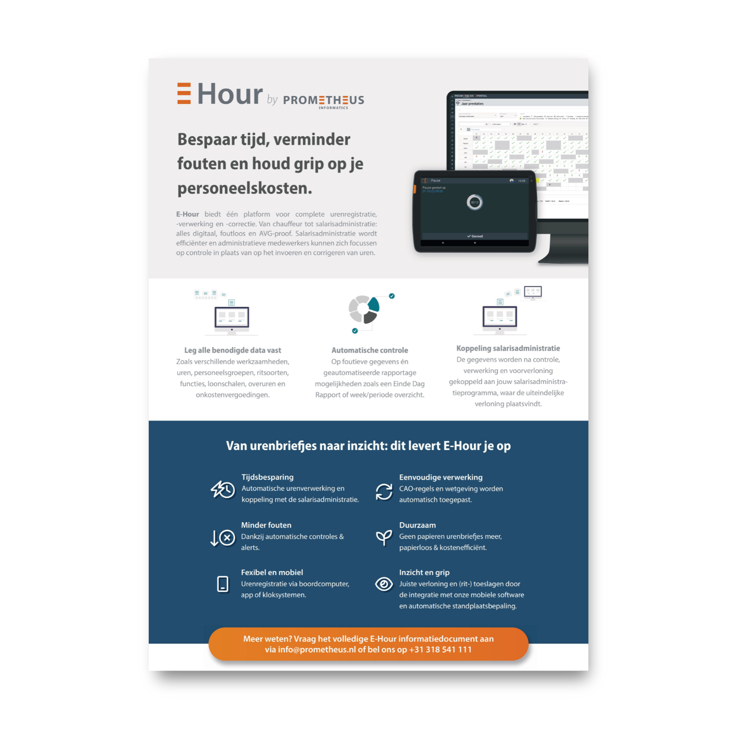 Wil je meer informatie over E-Hour? Download dan vrijblijvend ons informatiedocument. Voor aanvullende vragen over het document of het product, neem gerust contact op met ons.