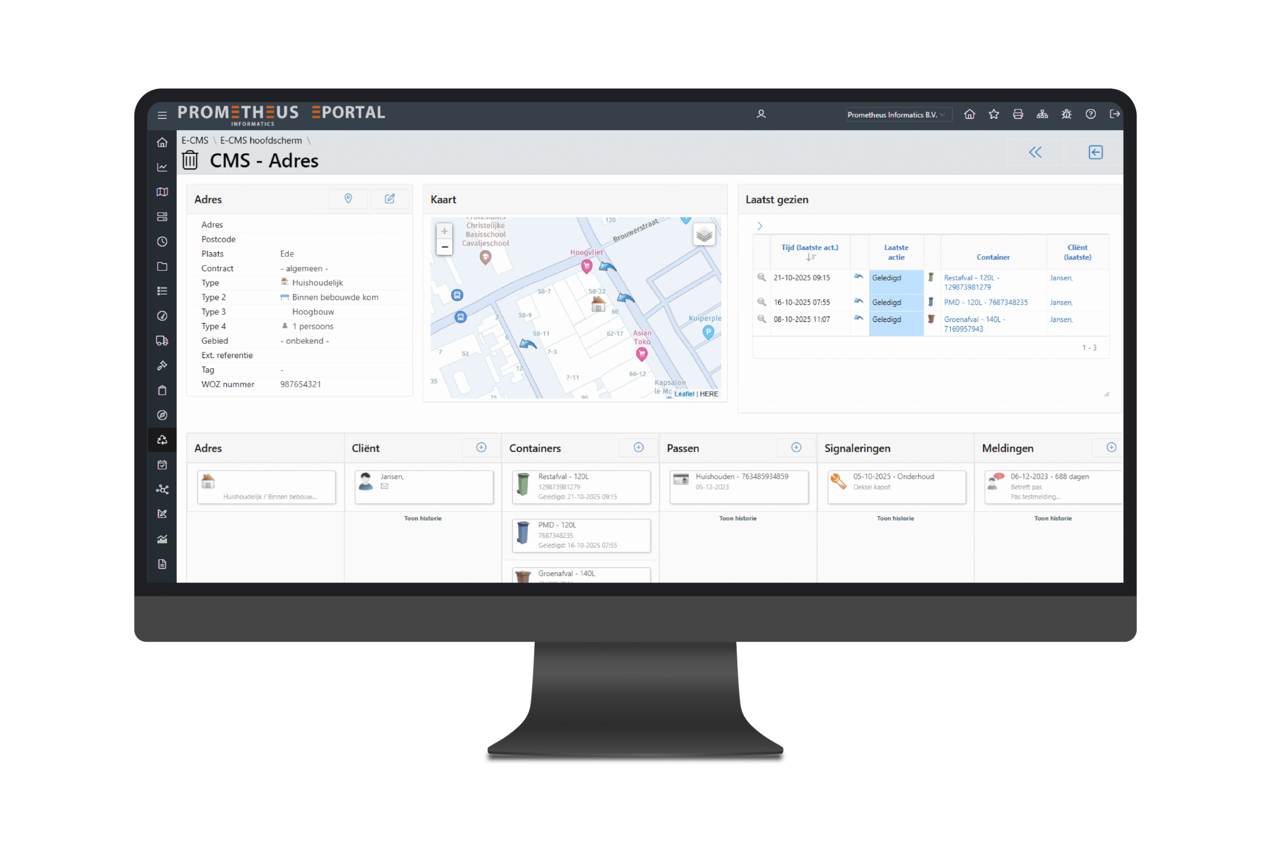 Dankzij de real-time koppeling tussen voertuigen en kantoor werk je met actuele data over planning, routes, wegingen en ledigingen. Je ziet direct waar een voertuig rijdt, welke containers zijn geleegd en hoe de operatie verloopt. Zo stuur je snel bij en houd je controle, zonder extra handelingen.
